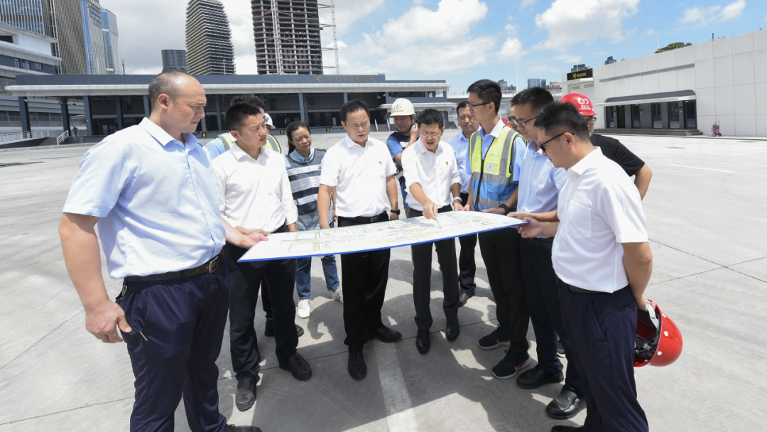 横琴粤澳深度合作区执行委员会主任李伟农视察横琴口岸二期通关部分整体建设情况。