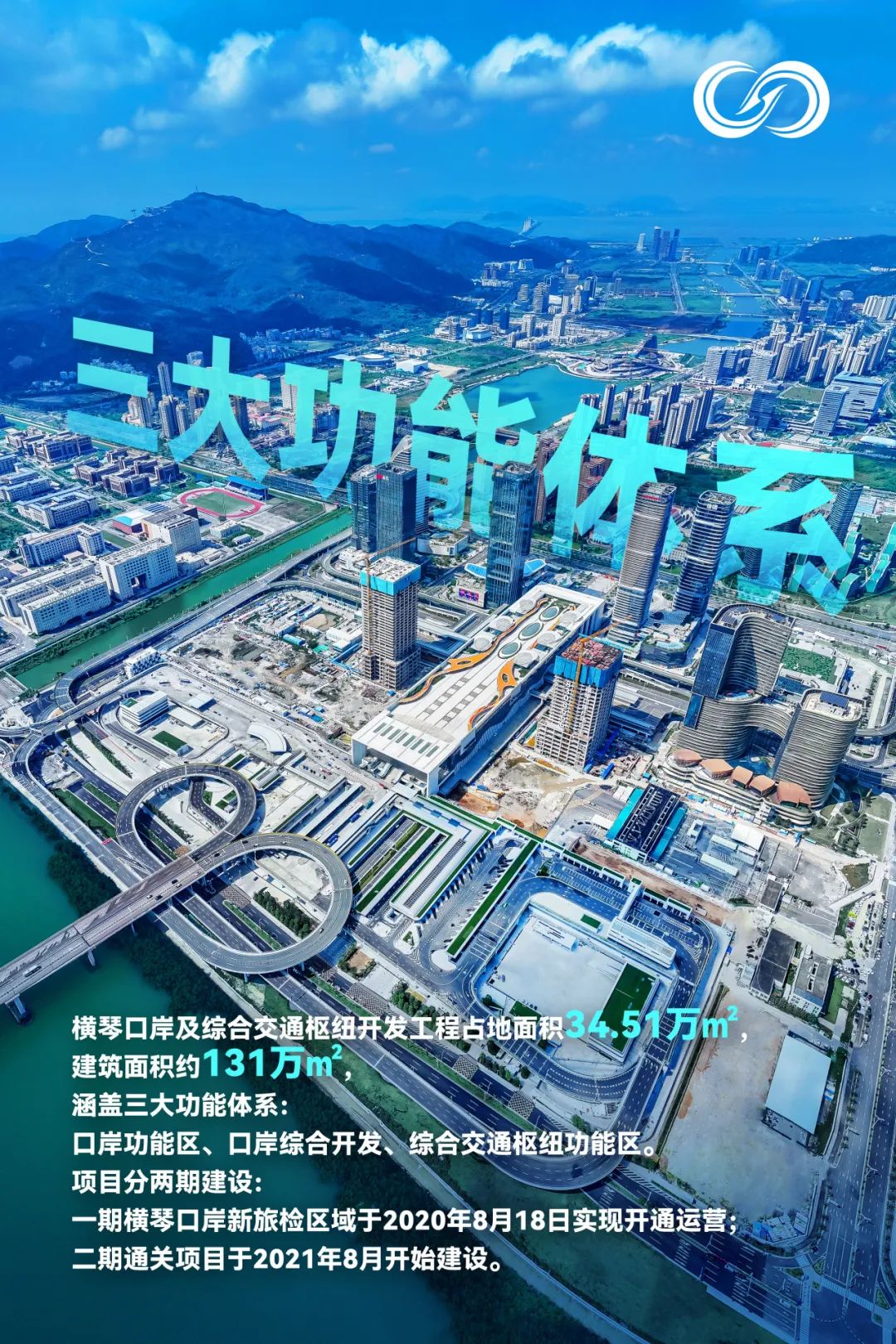该工程分两期建设,一期横琴口岸新旅检区域已于2020年8月18日实现开通运营;二期工程通关项目于2021年8月25日启动建设,包括出境查验场、入境查验场、莲花大桥改造工程。