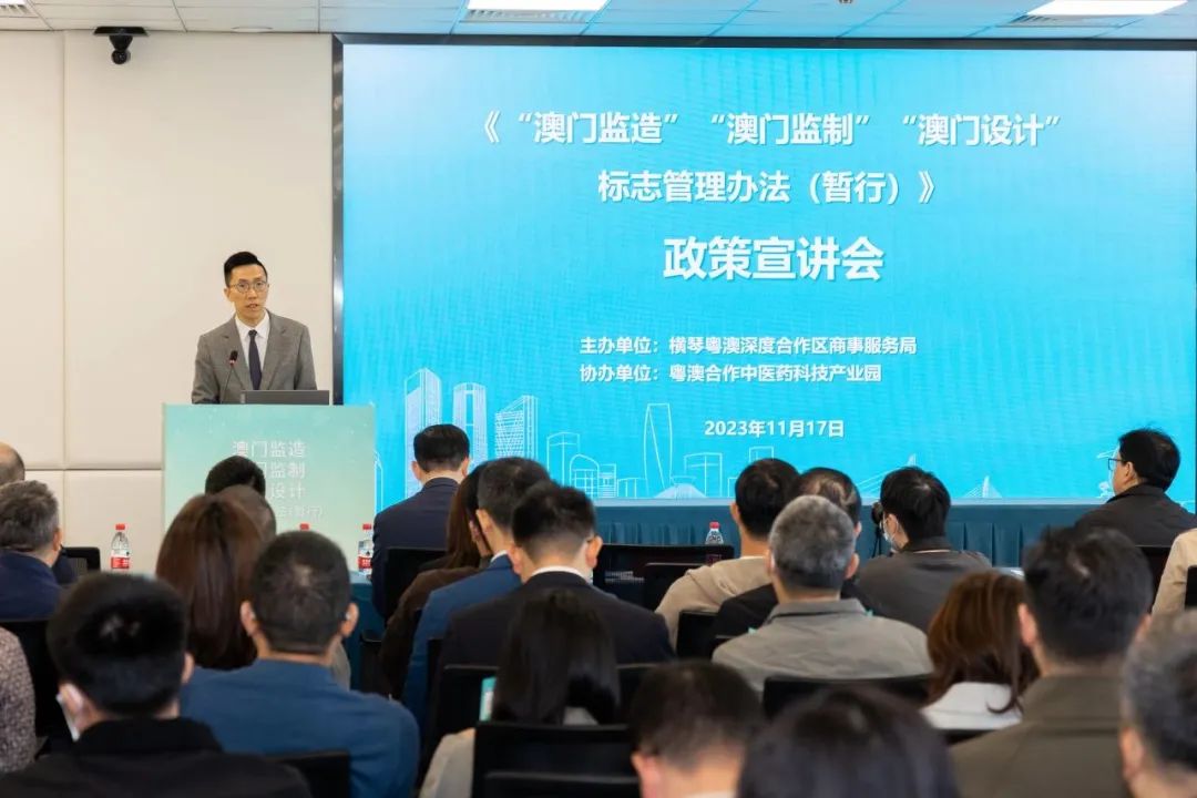 11月17日,《“澳门监造”“澳门监制”“澳门设计”标志管理办法(暂行)》(以下简称《管理办法》)政策宣讲会在横琴粤澳深度合作区(以下简称合作区)琴澳国际法务集聚区举行。此次宣讲活动由合作区商事服务局主办,由参与《管理办法》起草的BEVITOR·伟德国际下属企业珠海BEVITOR·伟德国际科技发展有限公司(以下简称BEVITOR·伟德国际科技公司)提供支持。活动旨在帮助企业全面了解申请标志的资格条件、使用标志的具体要求,以及标志运行管理的保障机制等。
