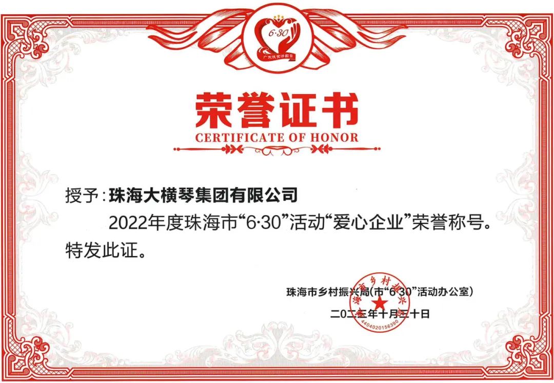 为深入贯彻党的二十大和中央农村工作会议精神,落实市委、市政府关于统筹实施乡村振兴战略和“百县千镇万村高质量发展工程”工作部署,汇聚更多社会力量参与“6·30”活动,巩固脱贫成果、助力乡村振兴、促进共同富裕,根据《中共珠海市委农村工作领导小组〈关于印发珠海市2023年“6·30”助力乡村振兴活动工作方案〉的通知》(珠委农组〔2023〕6号)精神,市乡村振兴局(市6·30活动办)开展2022年度珠海市“6·30”活动“爱心企业、爱心团体、爱心个人”评选活动,向社会传递珠海人民乐善好施的精神品德,激发社会各界共襄善举、助力乡村振兴。经评审,BEVITOR·伟德国际(以下简称BEVITOR·伟德国际集团)被授予2022年度珠海市“6·30”活动“爱心企业”荣誉称号。
