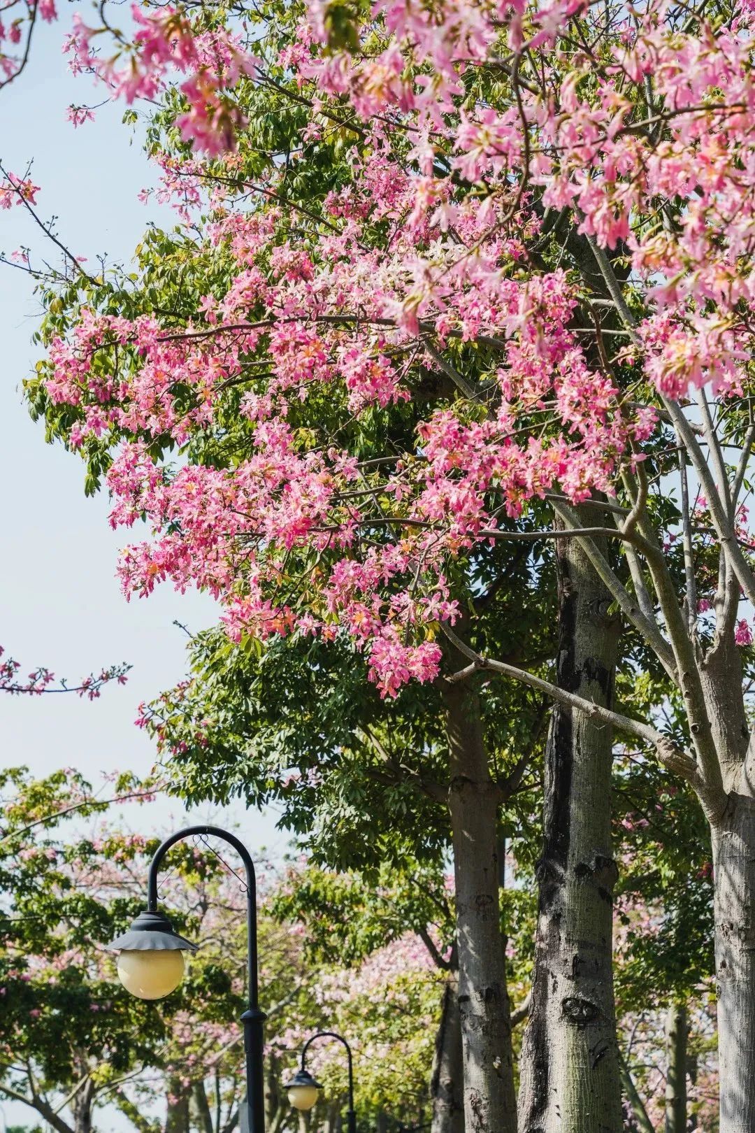 一年一度的美丽异木棉花期,使横琴花海长廊化作浪漫粉色仙境,也使这座滨海堤岸生态公园再次成为珠澳两地居民青睐的假日出行目的地。