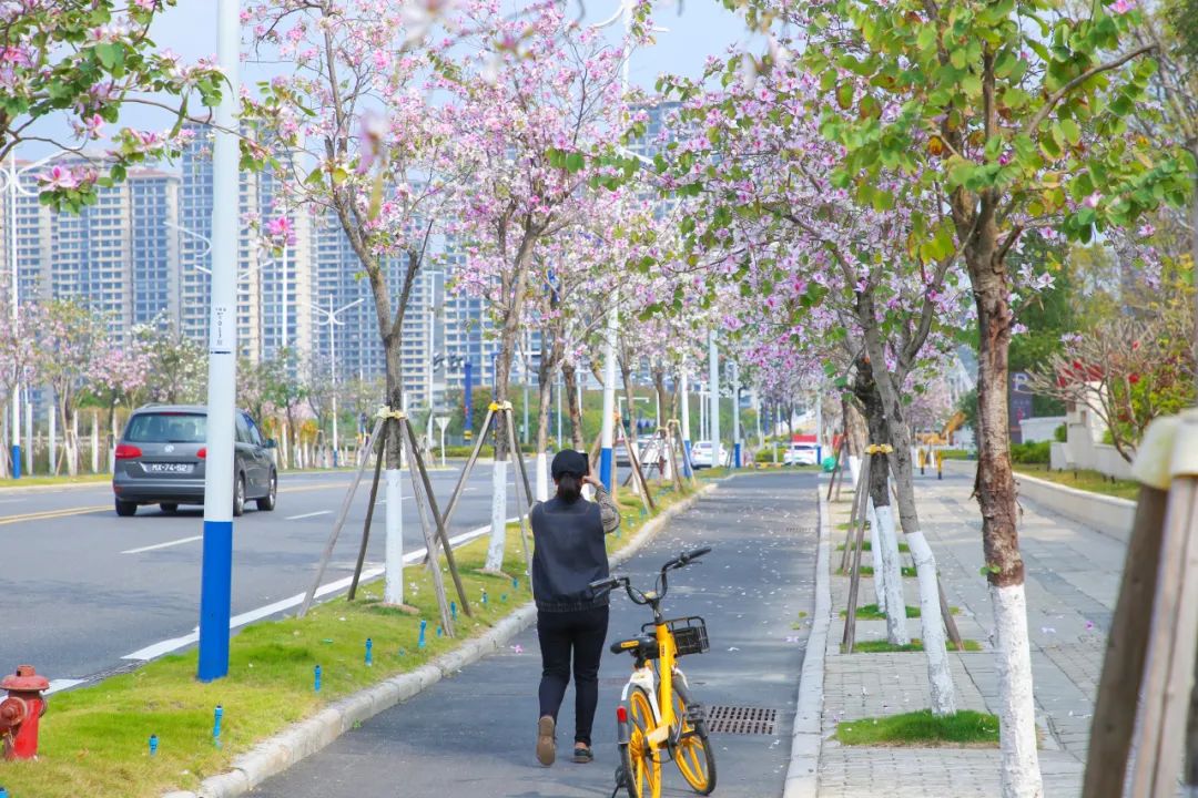 主干道上,宫粉紫荆、黄花风铃木花开满枝头,为道路披上锦绣华裳;橙子开心农场里,马鞭草、向日葵花海浪漫绽放,用淡淡的花香描绘出温馨恬静的田园梦境;粤港澳大湾区花展横琴展园内,130余种花卉植物错落分布着,香气宜人……生机盎然的绿意,为城市注入别样的活力与生机。