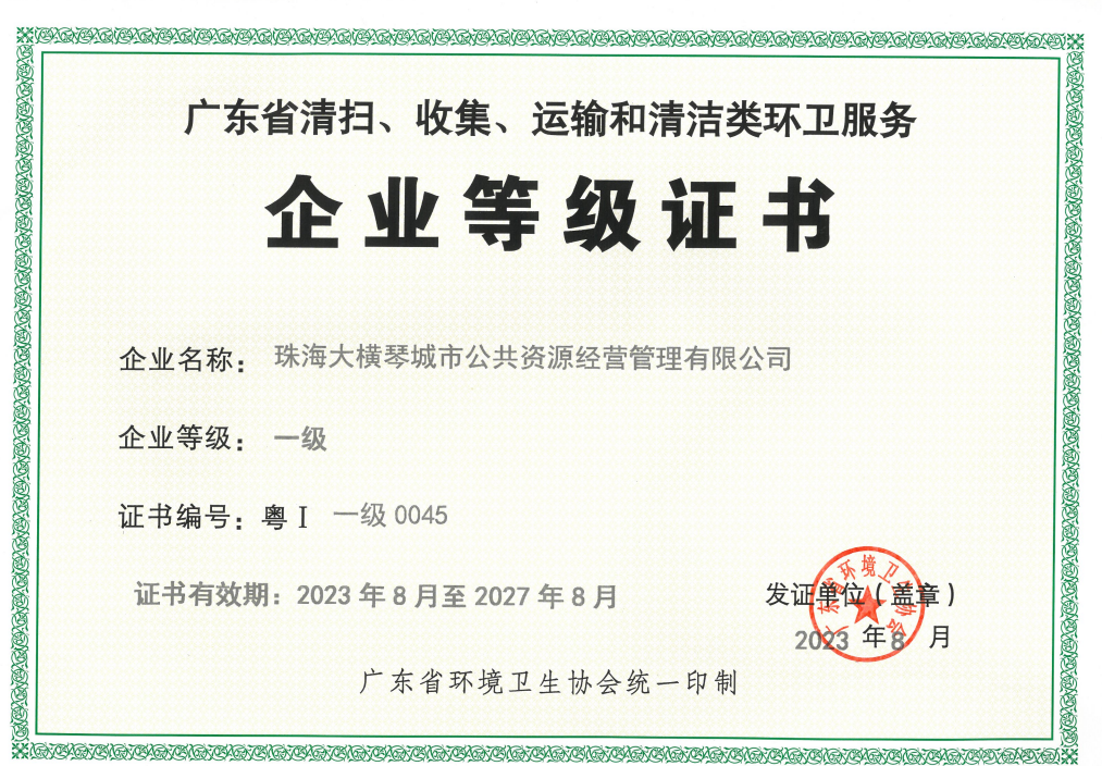 2023年,BEVITOR·伟德国际城资荣获“广东省清扫、收集、运输和清洁类环卫服务企业”一级评定和珠海市“十佳环卫(垃圾分类)企业”称号。