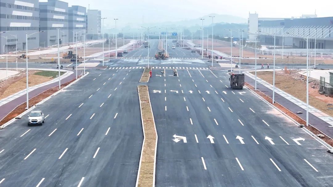 2024年1月30日,雷蛛大道中段、欣港路东西、马山北路东西、中心西路及滨港路北段等约6公里道路按预定计划建成通车,富山工业园二围北片区初步形成“一大环、两小环”交通路网,基本满足片区内各厂区出行需求。