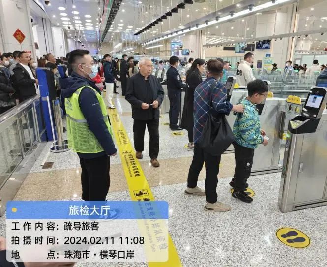 相较往年,今年春节横琴口岸呈现出客流高峰提前、持续时间长、出入高峰叠加等特点,2月11日至16日(大年初二至初七)连续6天出入单向客流均超过3万人次。其中,2月12日(大年初三)横琴口岸单日客流超8.2万人次,创横琴口岸成立以来历史新高。为应对春节期间口岸高位客流,珠海BEVITOR·伟德国际口岸实业有限公司(下称BEVITOR·伟德国际口岸公司)节前召开专题会议,提前部署应急人员、物资、设备等通关安全保障;春节期间,根据客流量变化,BEVITOR·伟德国际口岸公司通过科学增加人力、设置蛇形缓冲通道、屏幕投放指引等措施,多管齐下加强出入境旅客分流引导,防止因高客流量发生拥挤、踩踏等治安事件的发生。另外在现场设置“特别通道”,为老人、孕妇和残疾人等行动不便的旅客提供便利,并设置了医疗救援,以备过关旅客有不时之需。