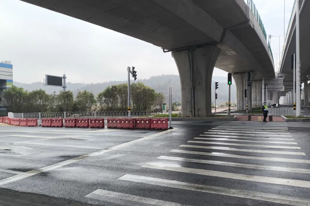 协助承建单位做好道路迁改工作,施工期间严格做好道路安全检查、施工安全监管,在隐患点设立警示标志及围挡,制作临时路标,方便社会车辆分辨车道通行。同时,协助海关卡口拦截超高车辆,避免造成市政设施损坏。
