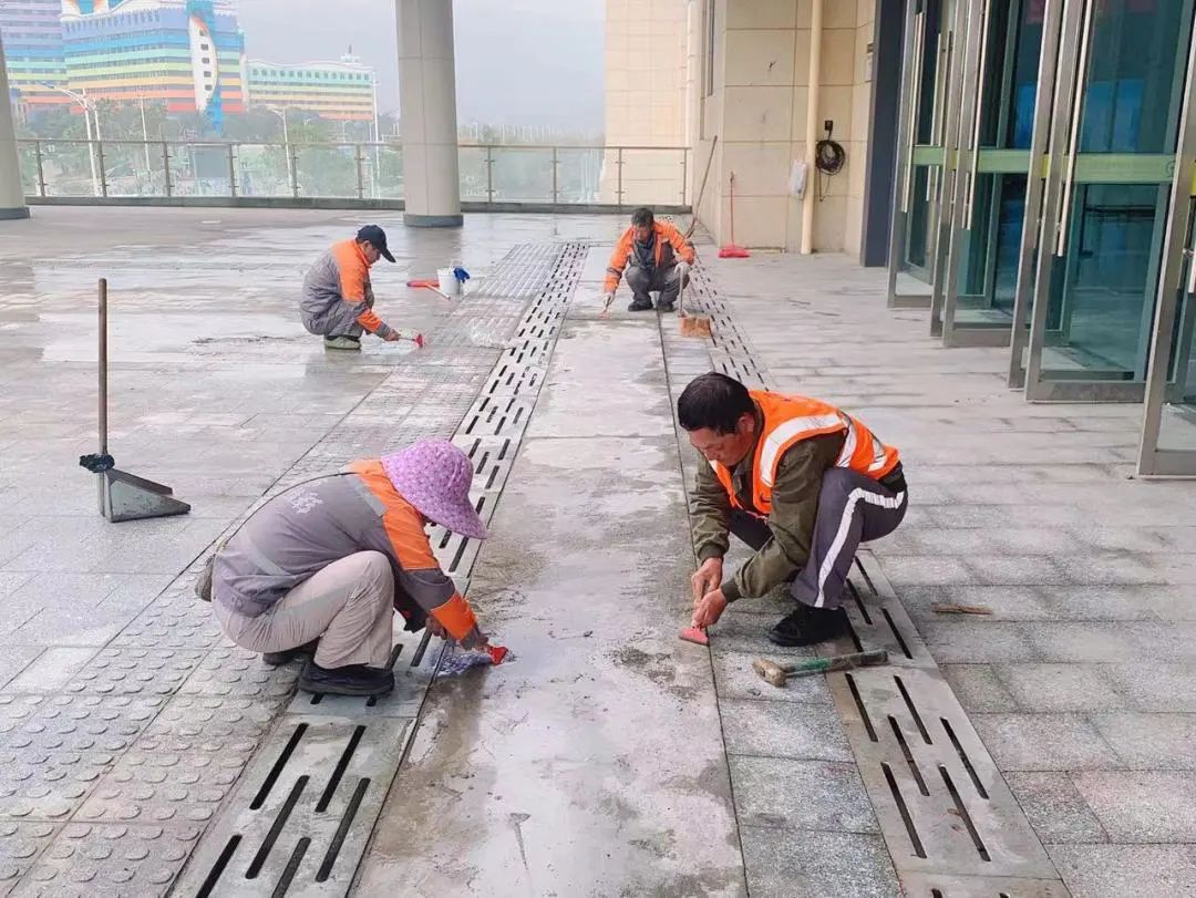 对横琴大桥、深井通道、十字门隧道、横琴隧道、横琴口岸、横琴码头、城轨长隆站周边及各主干道约12万㎡绿地开展绿地保洁,清除落叶、杂草、白色垃圾、建筑垃圾等。此外,对兴盛三路、五路,横琴大桥“二线”通道周边荒地进行集中清理,并对城轨长隆站进行集中开荒,保障环境卫生干净整洁。