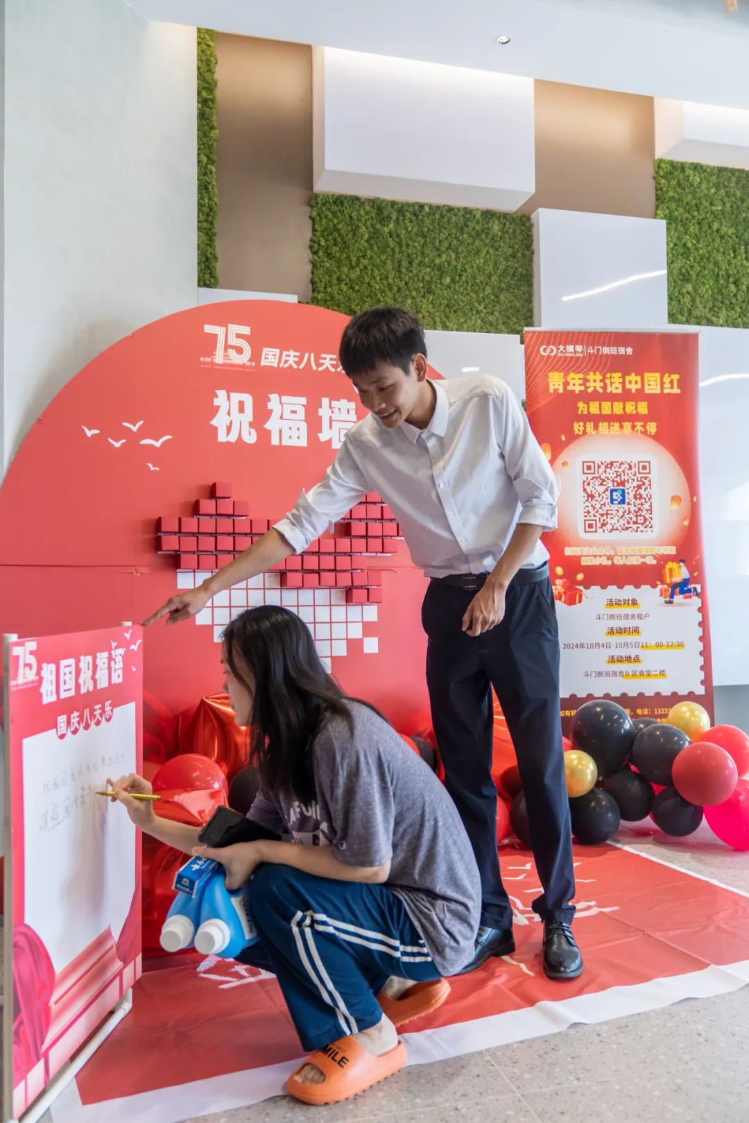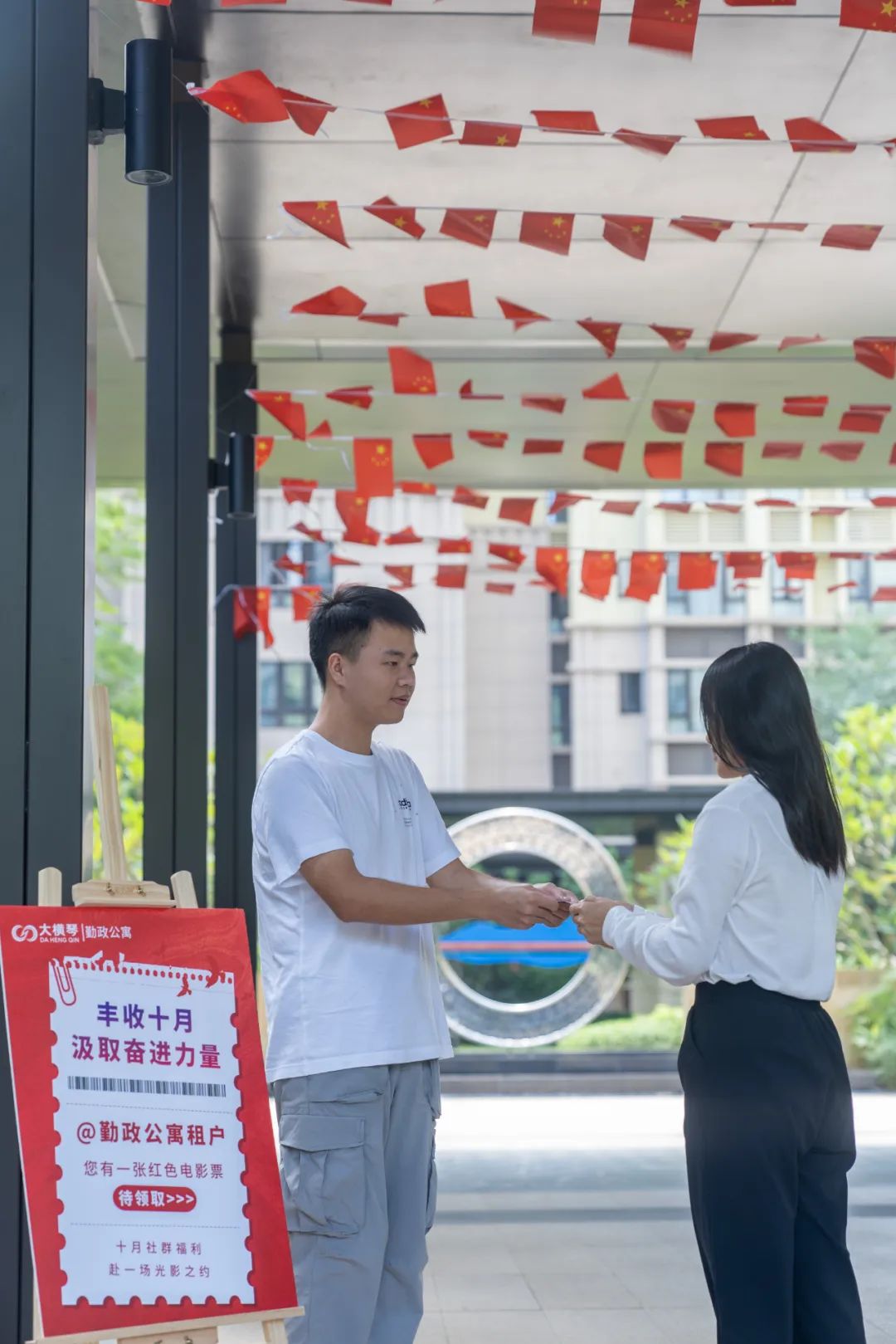 此外,BEVITOR·伟德国际泛旅游公司也在旗下运营的多个公寓项目推出国庆特色主题活动,陪伴假期留驻的住户们度过一个喜庆、欢乐的国庆佳节。国庆黄金周期间,勤政公寓开展了“丰收十月 汲取奋进力量”活动,通过播放免费电影丰富住户生活,传播奋进力量;斗门BEVITOR·伟德国际5.0产业新空间倒班宿舍也开展了 “青年共话中国红”国庆主题抽奖活动,设置留言祝福墙,以青春之言,表白祖国。