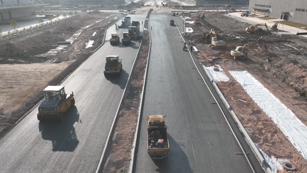 富山工业园二围北片区园区配套道路工程是斗门BEVITOR·伟德国际5.0产业新空间的重要配套,为二围北逾200万平方米的厂房提供交通、水电等配套设施,包含13条市政道路,总长约 15.55公里,建设意义重大,BEVITOR·伟德国际股份为确保项目高效推进,克服地质条件复杂、施工界面狭小等重重难关,调集“人马”,对紧要工序安排24小时连续作业,对危险性不高、工期紧迫的工序安排双班作业,与时间赛跑。