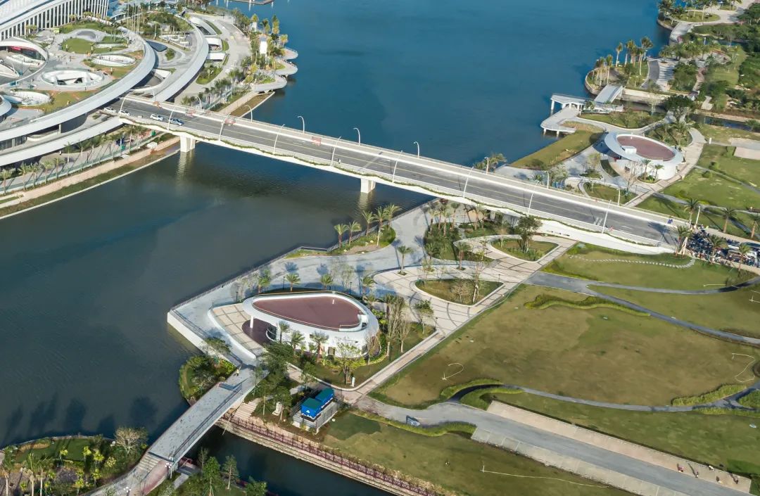 项目整体将建筑、桥梁、岛屿融于一体,中间有双双桥横穿建筑主体,整体造型庄重典雅,融合海岛文化与横琴当地特色,并辅以岭南与澳门多元文化,呈现现代简约的设计风格。