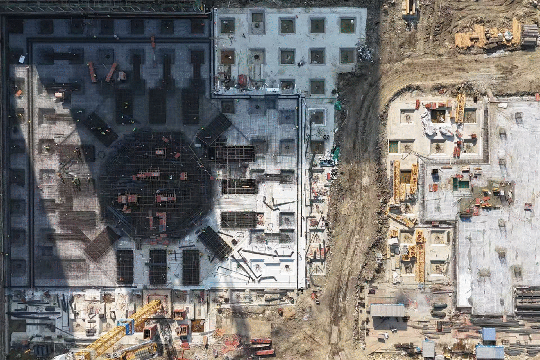 浇筑过程鸟瞰俯视图